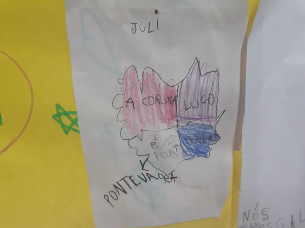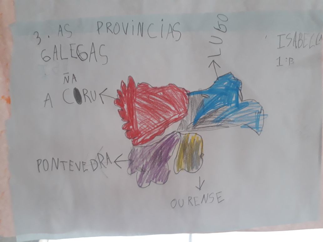 Aos cativos e cativas de 1° grado encántalles debuxar o mapa de Galicia coas provincias, a bandeira e o escudo. Compartimos historias das familias galegas e xa teñen ganas de viaxar alá para percorrela enteira!